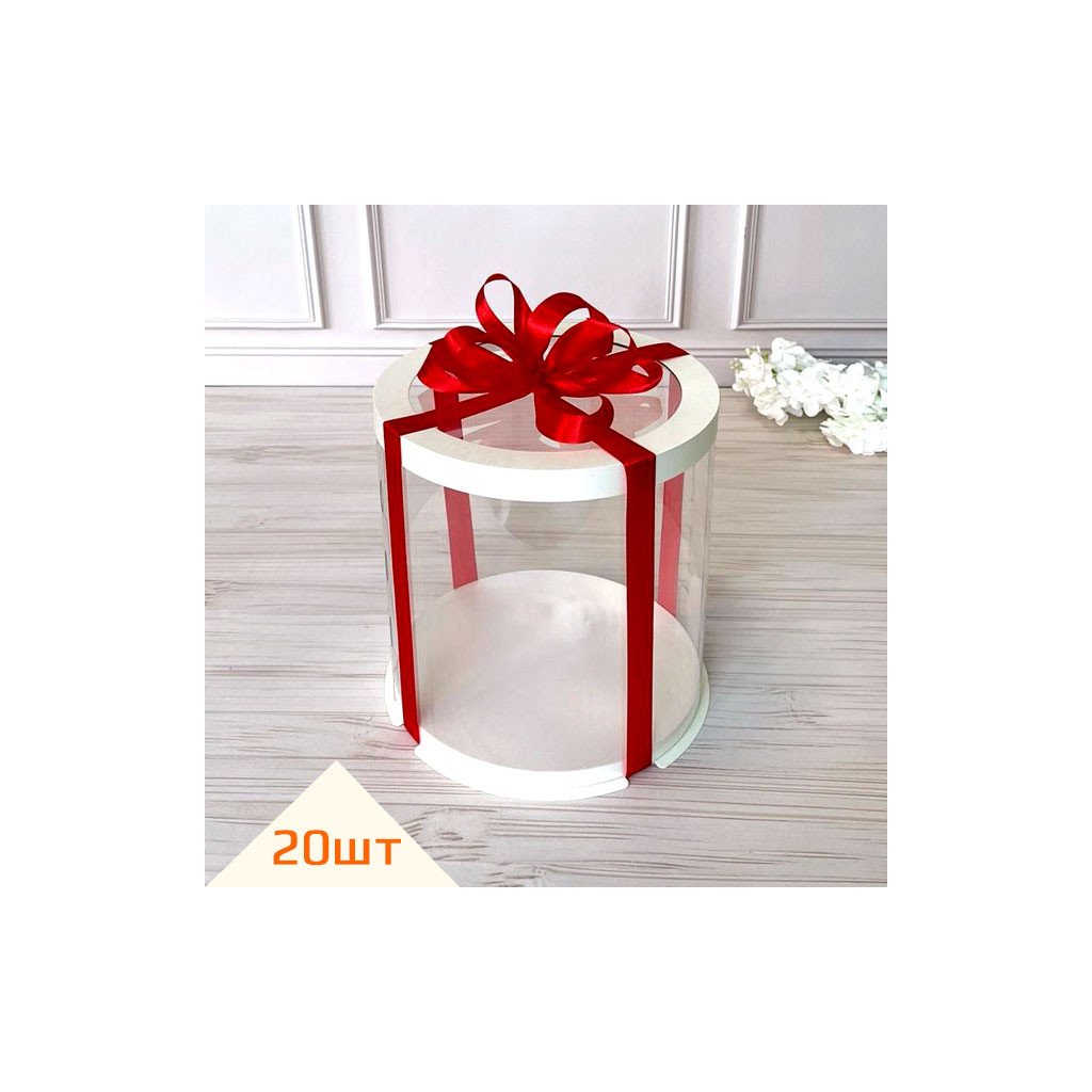 Коробка тубус d200 h300 біла з прозорою кришкою