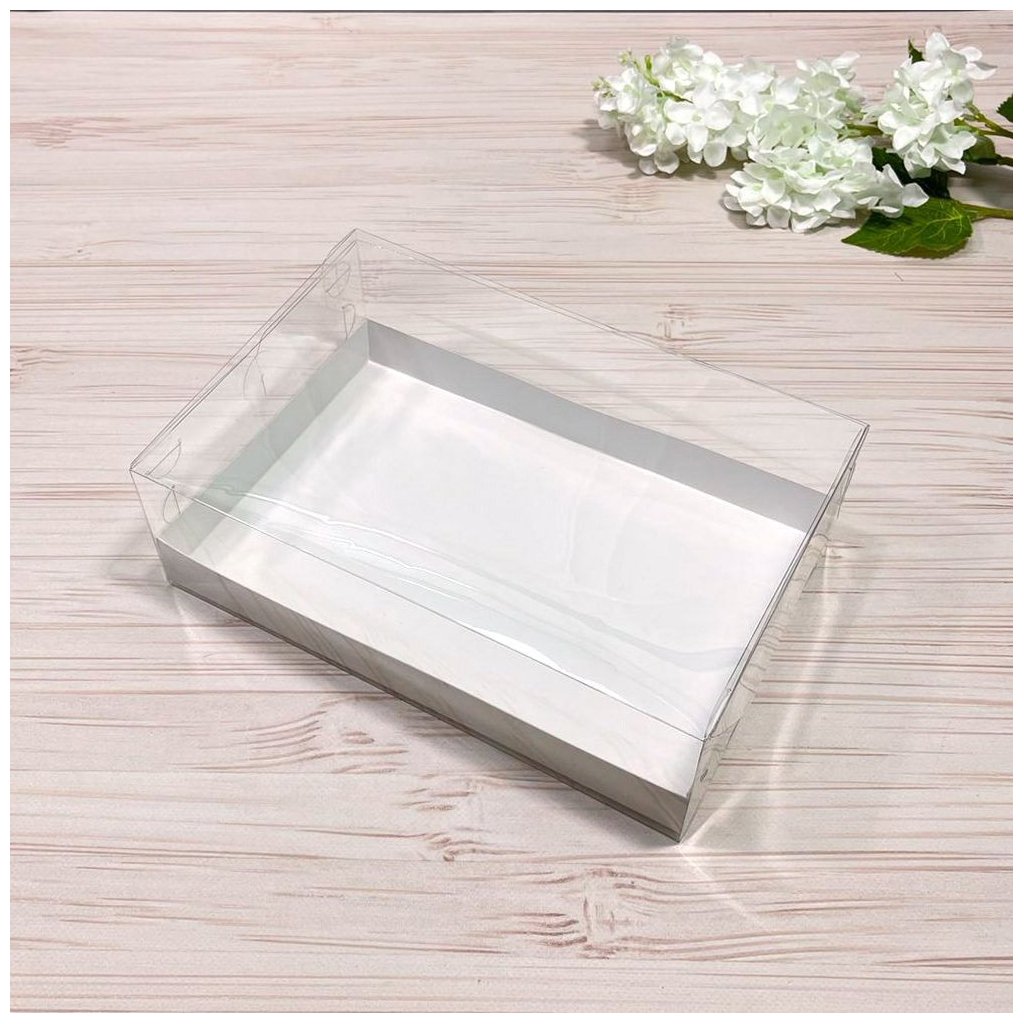 Материал и конструкция. ПЭТ 350 мкм. Стабильная складная конструкция с фиксирующими замками. Крышка прозрачная — изделие хорошо видно на витрине.