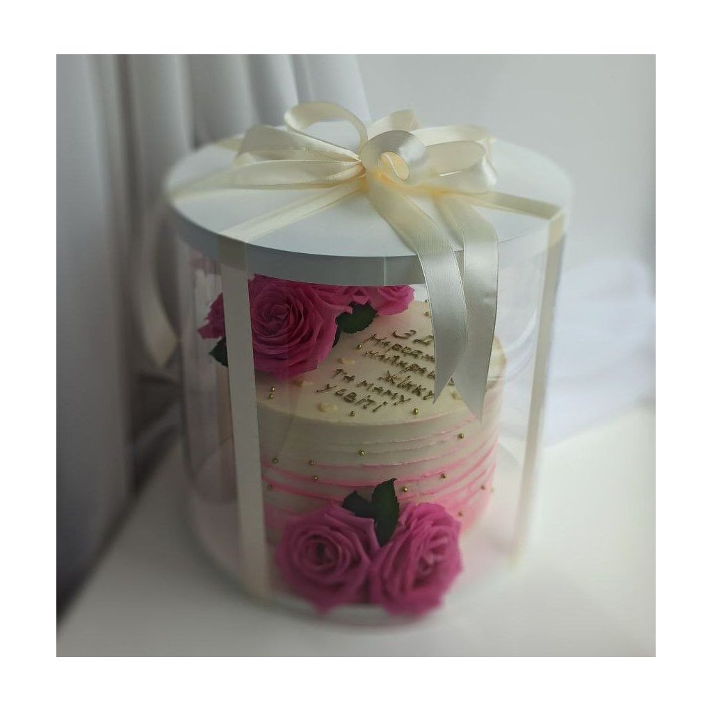 Назначение. Тубус D250 × H250 мм для упаковки и безопасной транспортировки классических тортов и высоких десертов соответствующего диаметра. Подходит для выдачи, доставки и подарочной подачи.