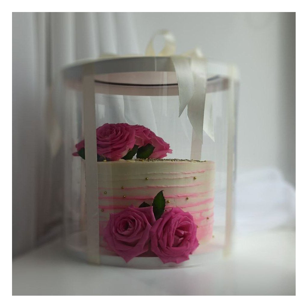 Призначення. Тубус D250 × H250 мм для пакування та безпечного транспортування класичних тортів і високих десертів відповідного діаметра. Підходить для видачі, доставки та подарункової подачі.